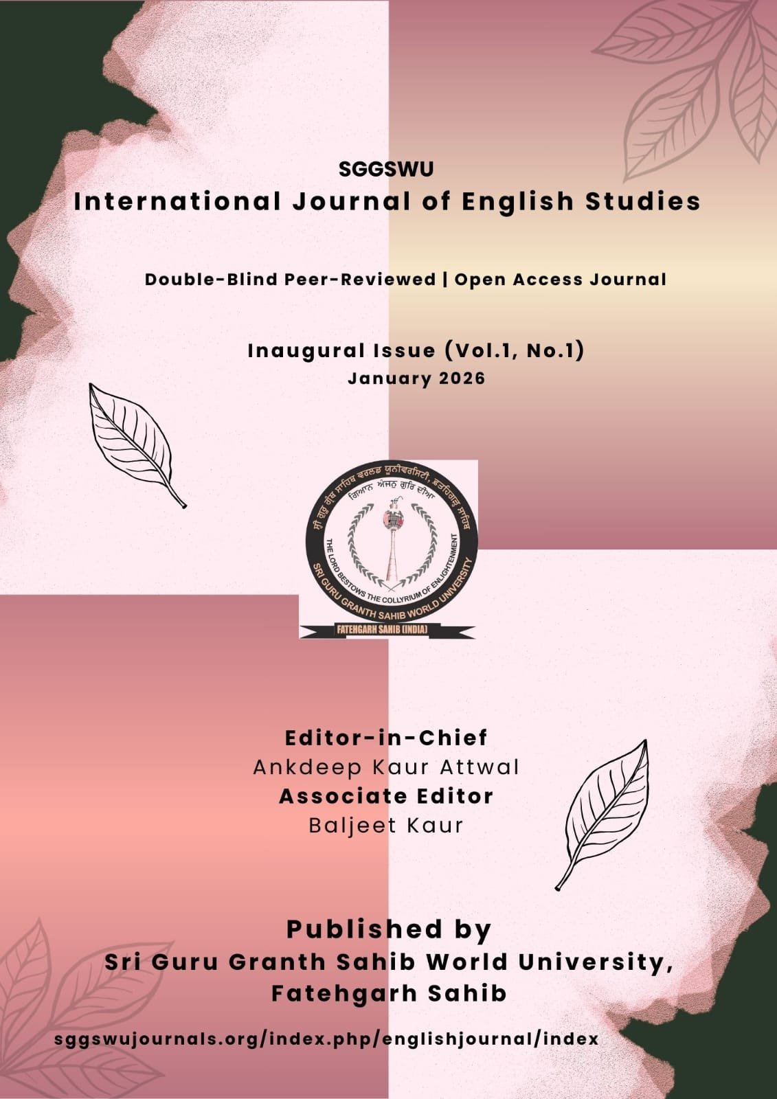 The SGGSWU International Journal of English Studies  is a peer-reviewed, open-access academic journal dedicated to fostering high-quality scholarship in the field of English Studies. Established under the patronage of Dr. Prit Pal Singh, Vice Chancellor and Dr. Sukhwinder Singh Billing, Dean Academic Affairs, Sri Guru Granth Sahib World University, the journal reflects the institution’s commitment to academic integrity, inclusivity, and the pursuit of enlightened knowledge.